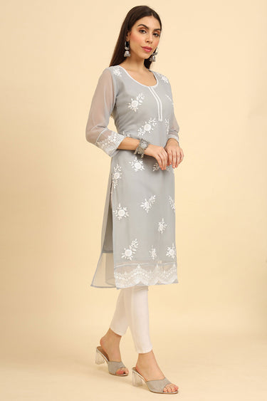 Marvellous Georgette Fabric Embroidered Kurti In Grey Color