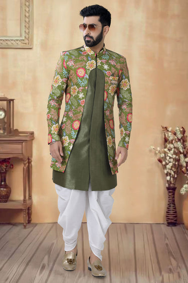 Moss Green Color Silk Fabric Readymade Men Indo Western