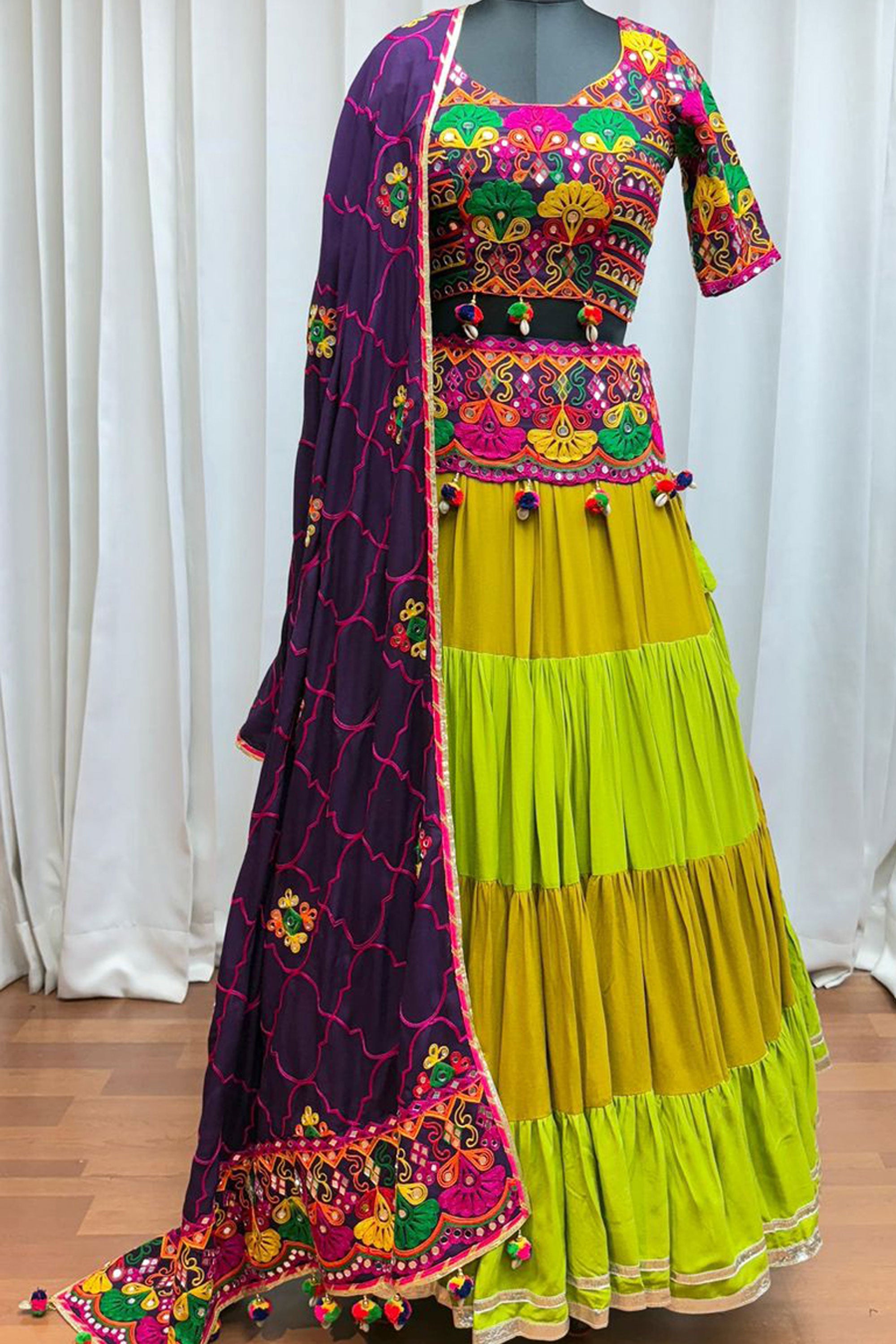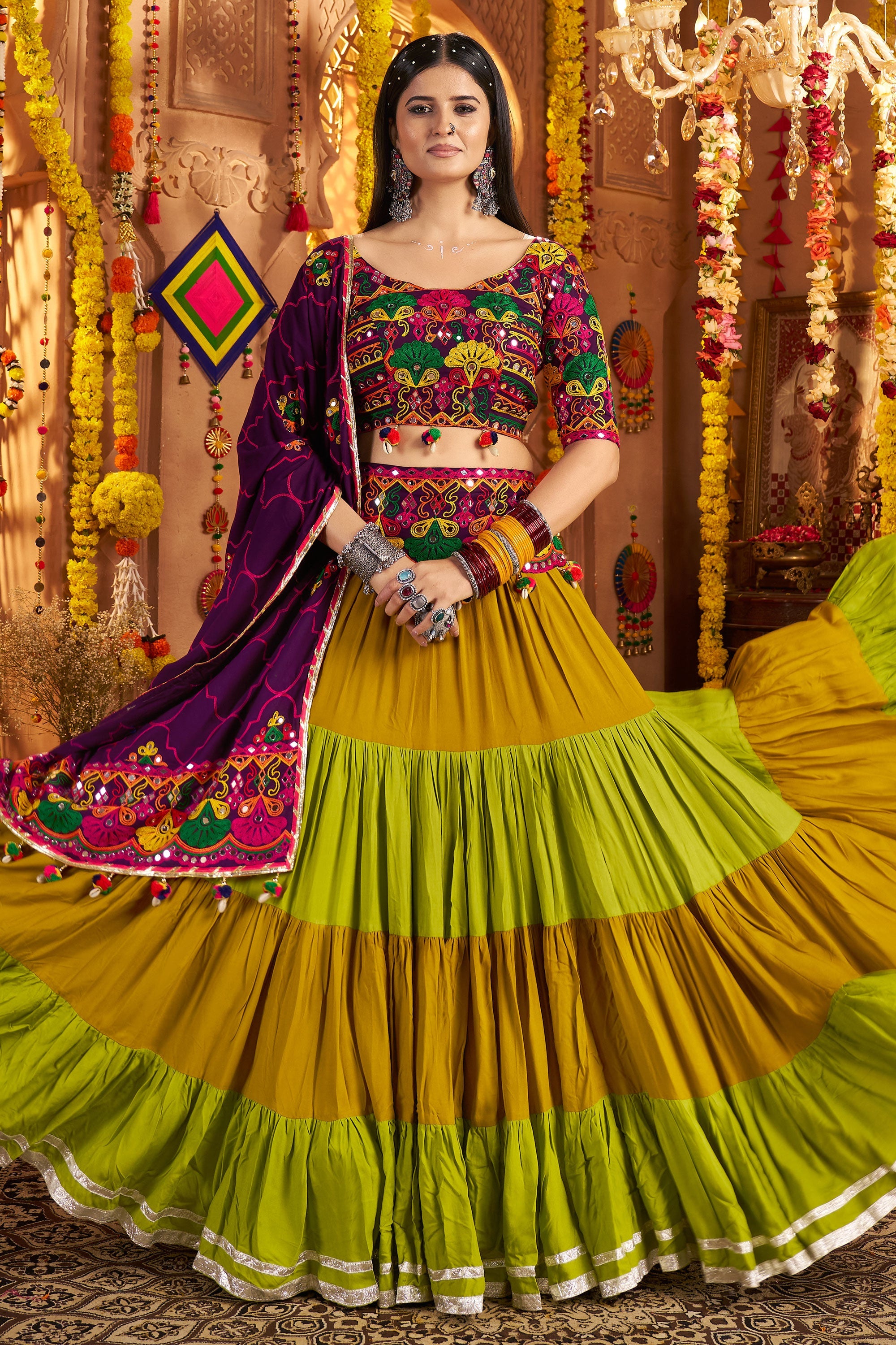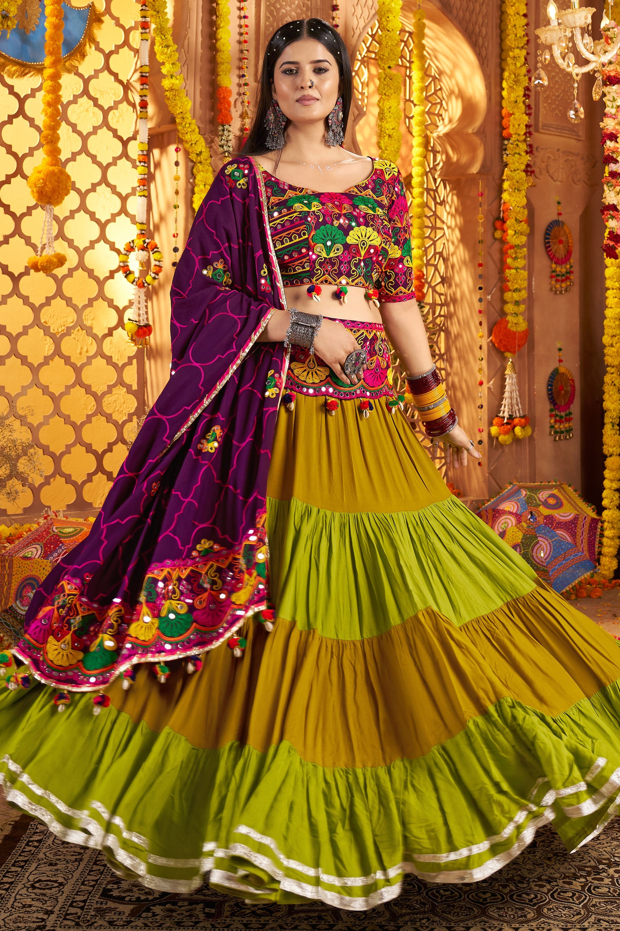 Multi Color Cotton Viscose Lehenga For Navratri Celebrations