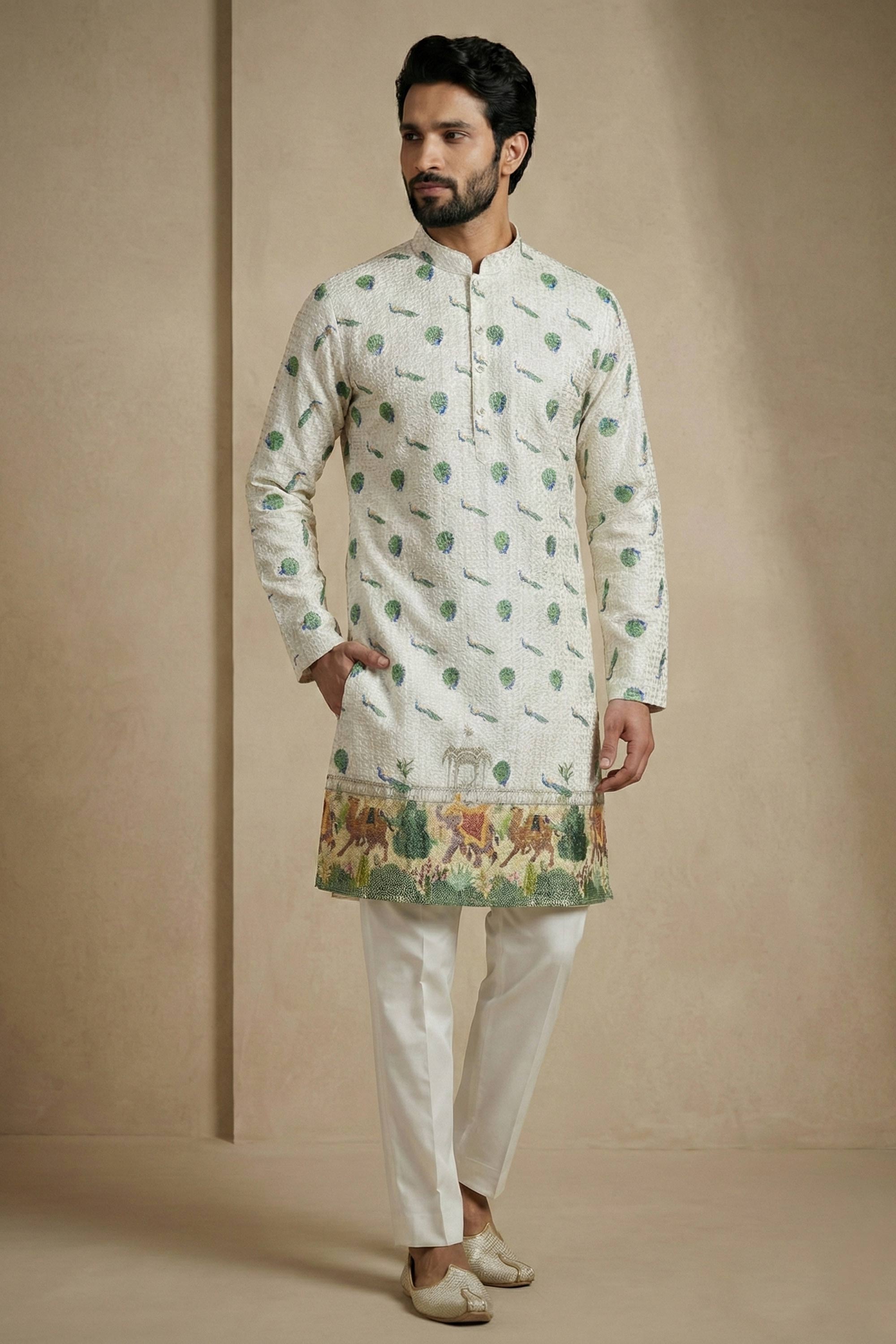 Hand-printed pieces are crafted with traditional techniques, which may result in slight imperfections—these add to their uniqueness and artisanal charm. Due to the natural dyeing and printing process, slight color bleeding may occur during the first wash. As these designs are not machine-printed, their raw, handcrafted essence enhances the beauty of your chosen outfit.