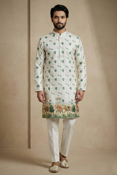 Multi Color Printed Cotton Fabric Readymade Kurta Pyjama For Men