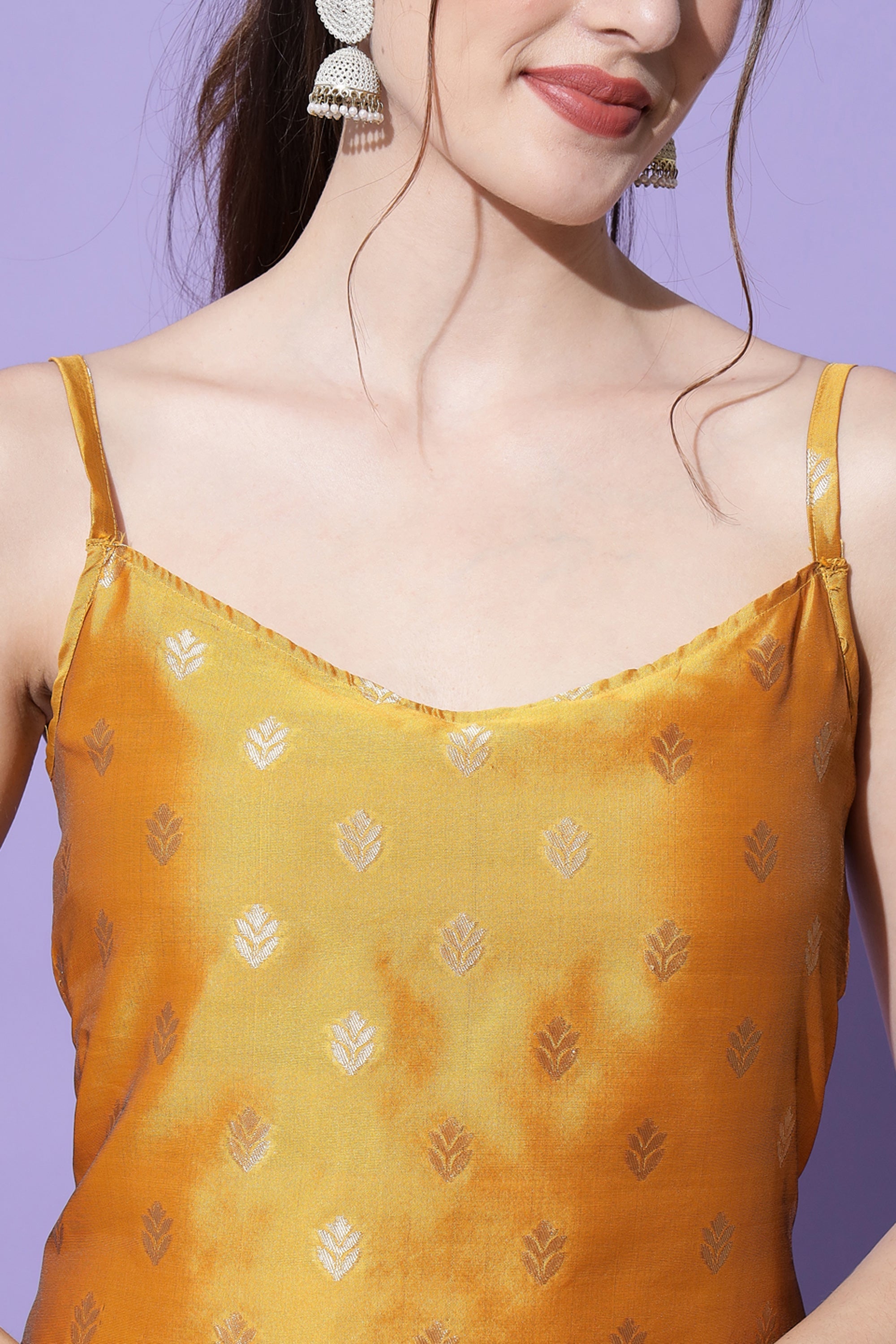 Mustard Jacquard Silk Weaving Work Salwar Kameez With Banarasi Silk Dupatta