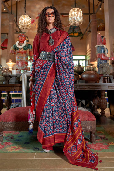 Navy Blue Casual Wear Art Silk Patola Printed Saree