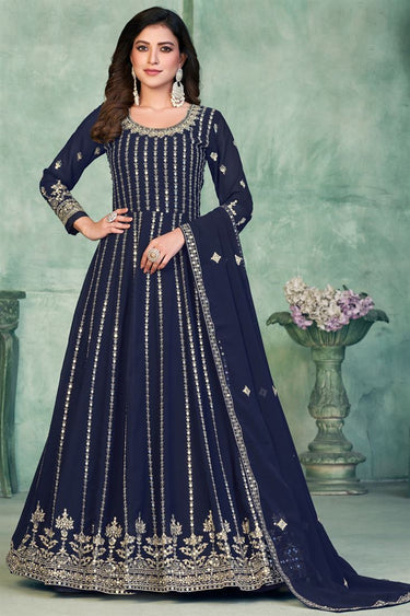 Navy Blue Color Party Wear Embroidered Anarkali Salwar Suit In Georgette Fabric