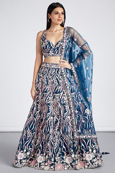 Navy Blue Net Sequins Embroidery Lehenga Choli