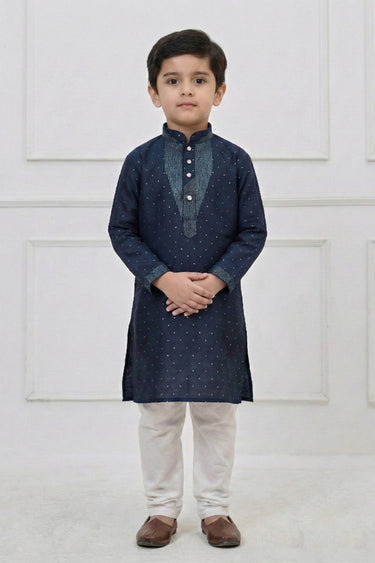 Navy Blue Silk Function Wear Readymade Kurta Pyjama For Boys