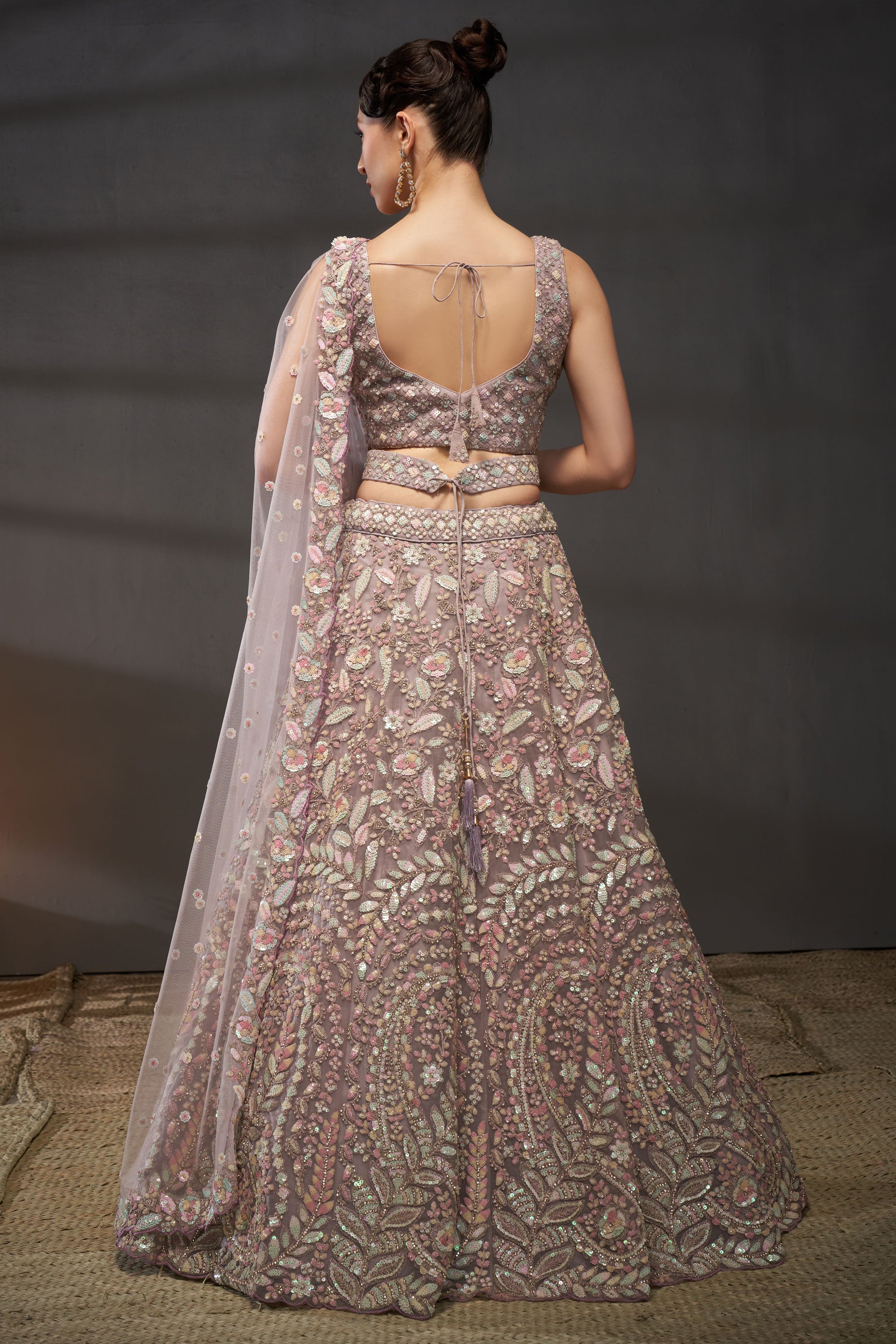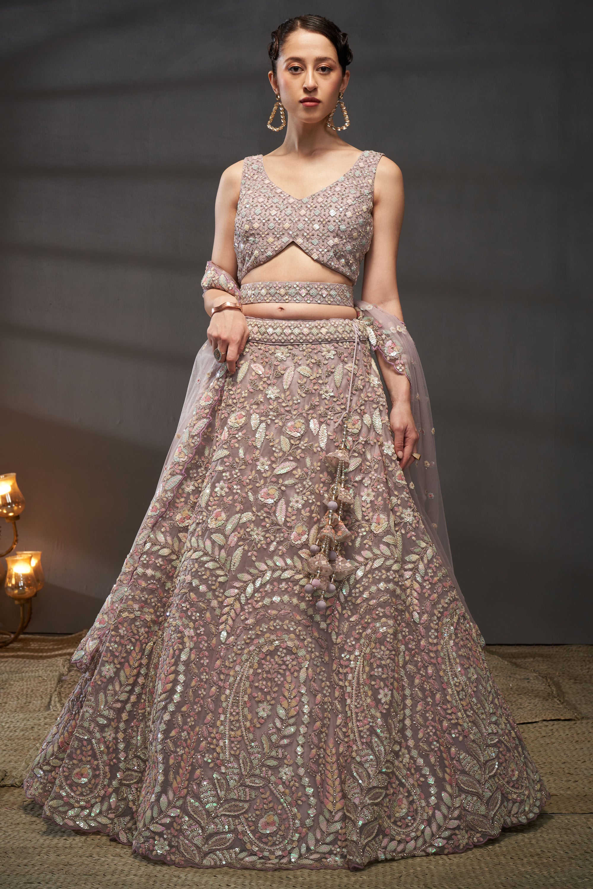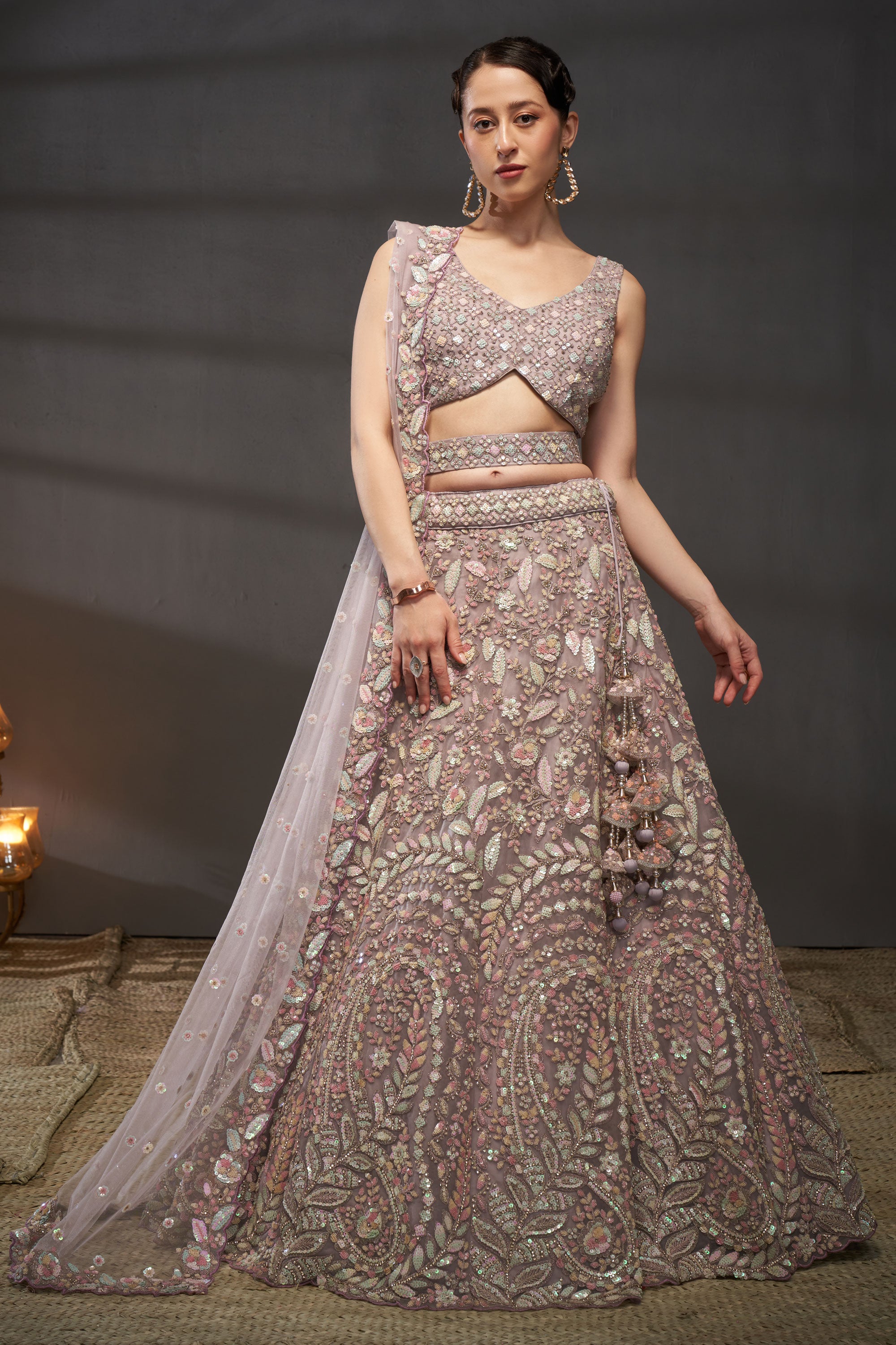 Net Fabric Function Wear Sequins Work Lehenga Choli In Lavender Color