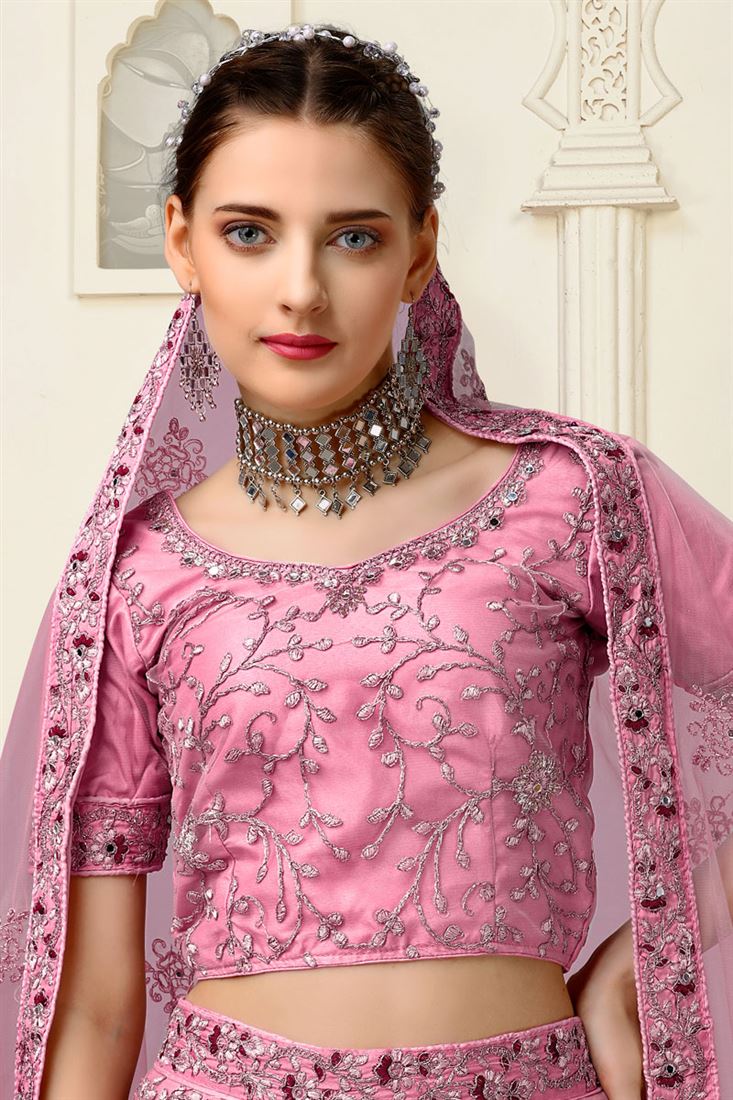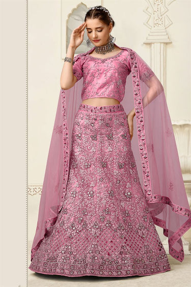 Net Fabric Pink Color Beatific Look Embroidered Lehenga