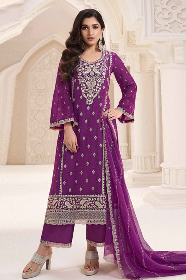 Nidhi Shah Chiffon Silk Fabric Purple Color Function Wear Designer Salwar Kameez