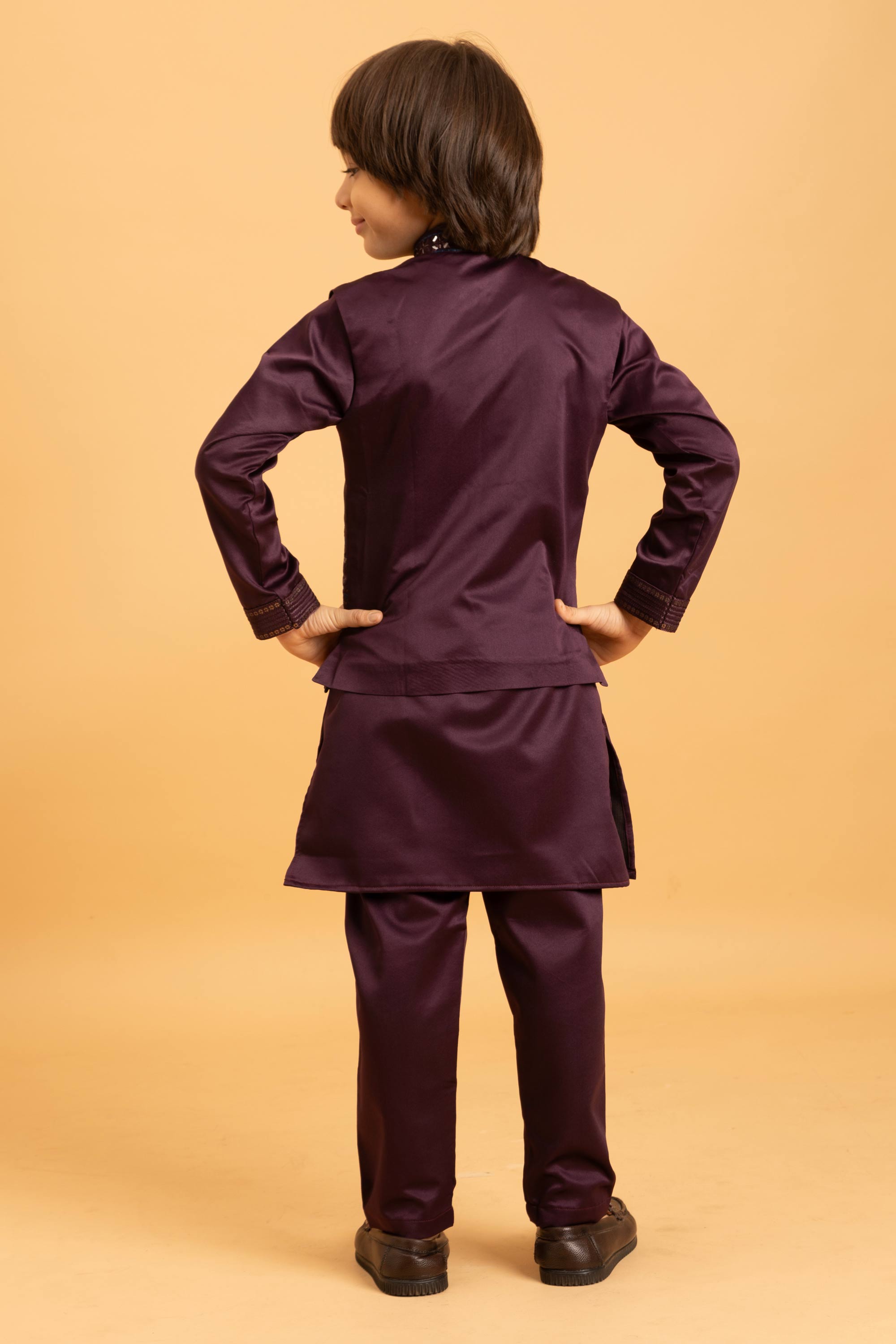 Occasion Wear Purple Satin Readymade Boys Kurta Pyjama With Jacket