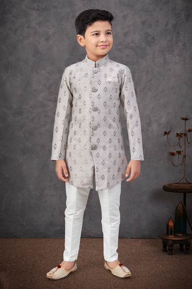 Occasion Wear Readymade Indo Western For Boys In Grey Color