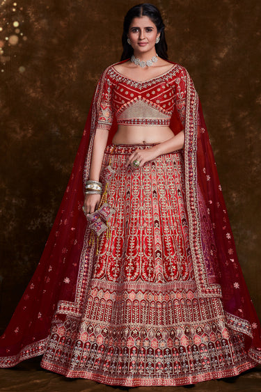 Occasion Wear Red Embroidered Lehenga In Art Silk Fabric With Designer Blouse