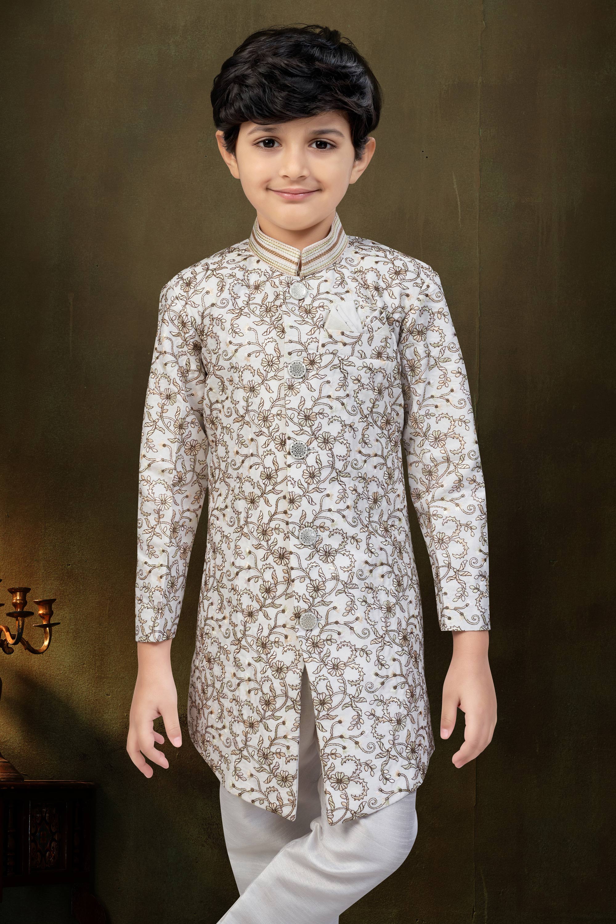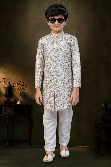 Off White Art Silk Readymade Indo Western For Boys