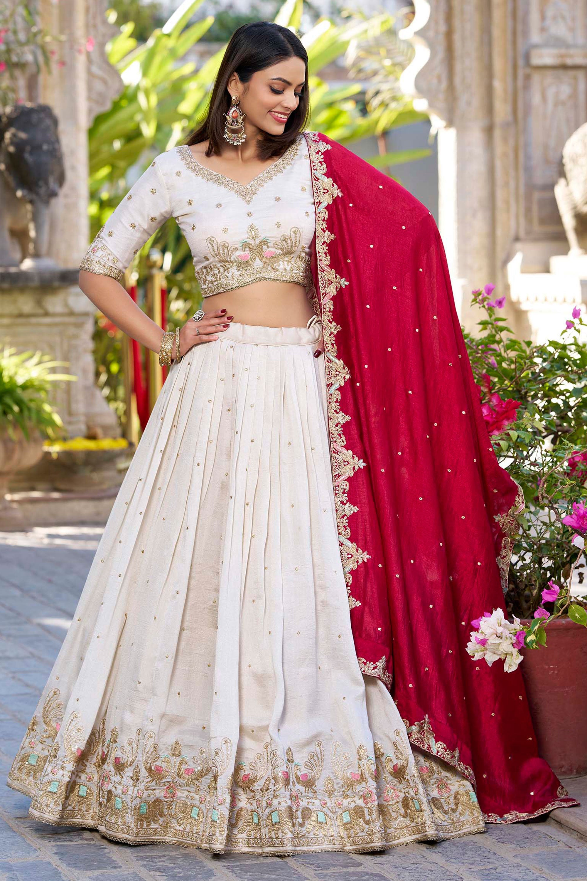 Off White Color Embroidered Work Lovely Lehenga In Vichitra Silk Fabric