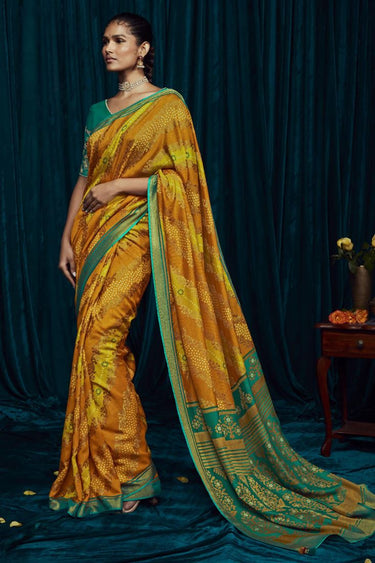 Orange Color Party Wear Printed Brasso Silk Fabric Saree With Embroidered Blouse
