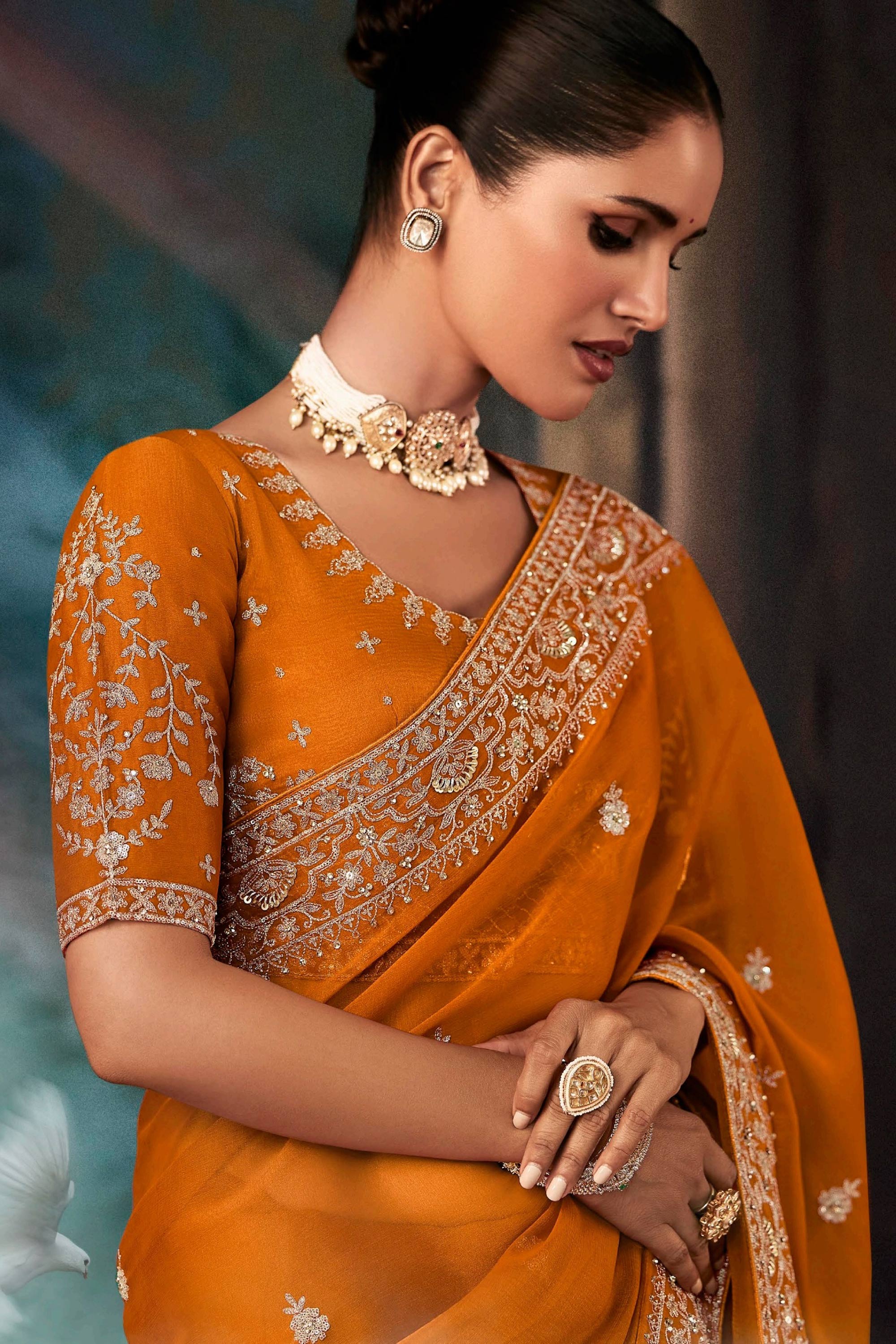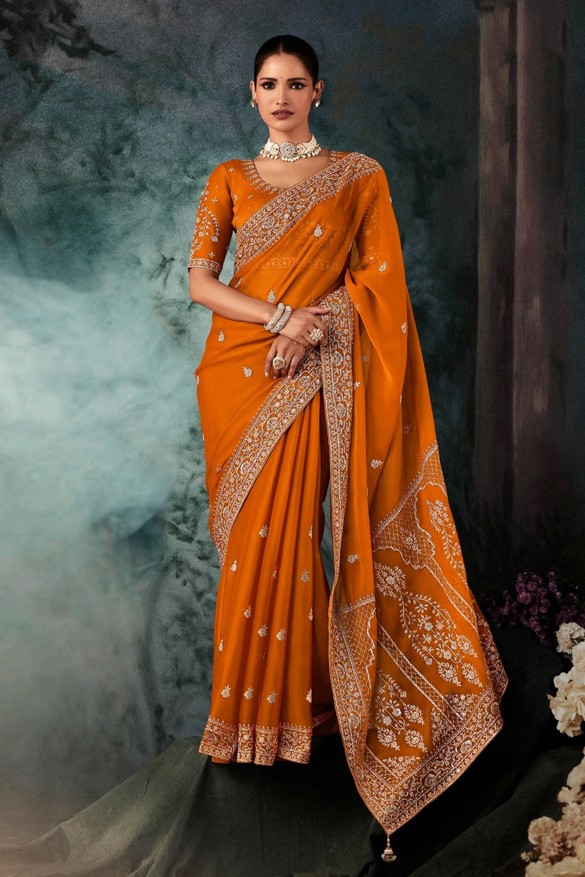 Turn heads at any wedding or special occasion with this stunning Heavy Embroidered Work Wedding Bridal Designer Saree. Designed with intricate detailing, the saree exudes sophistication and charm, ensuring you make a grand statement wherever you go. Crafted from high-quality materials, the vibrant hues and detailed embroidery offer timeless elegance. This set includes a heavy work blouse that arrives unstitched, allowing you to customize the fit and style to suit your preferences. Perfect for brides, bridesmaids, or anyone looking to make an unforgettable impression, this saree adds a touch of regal beauty to your wardrobe.
