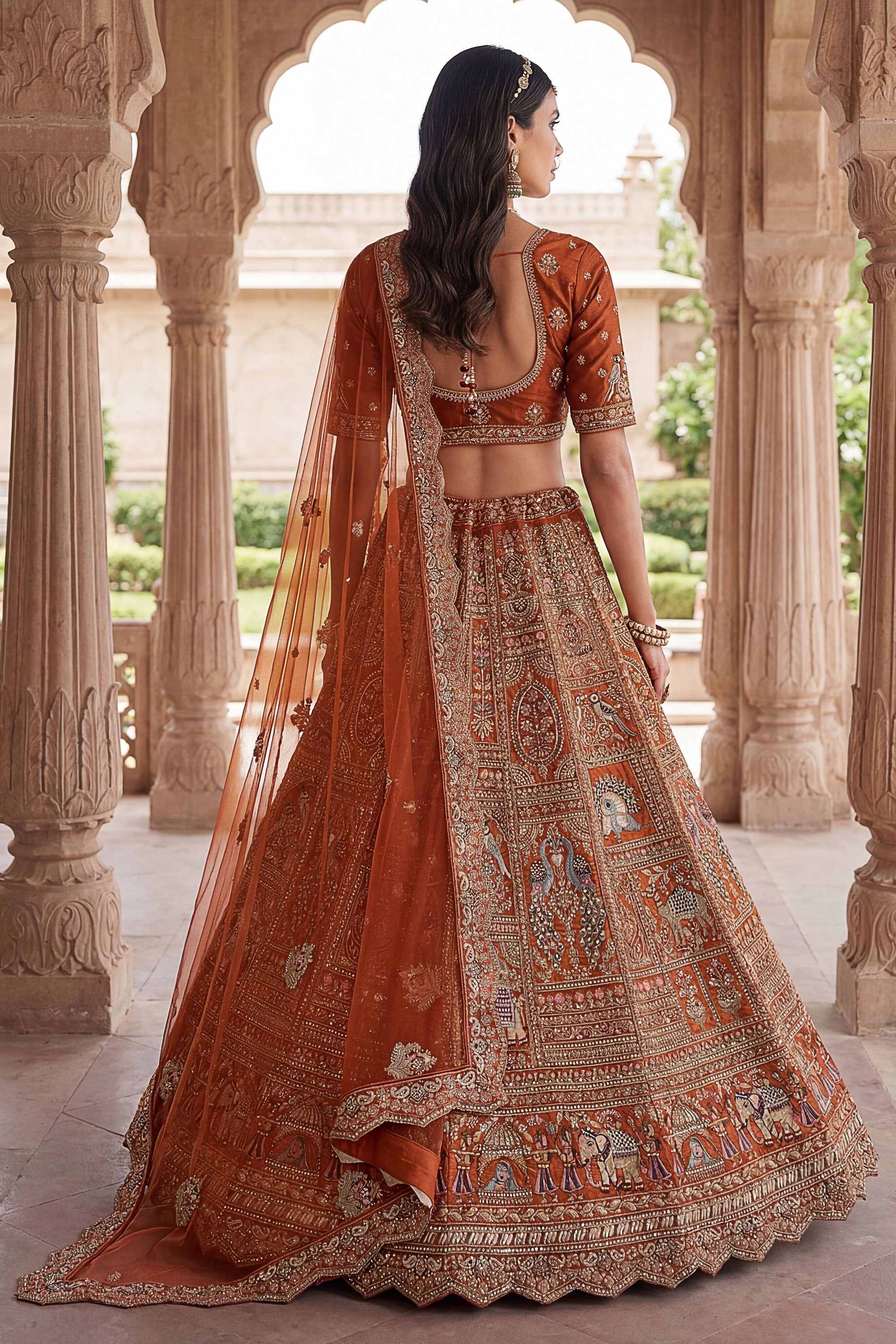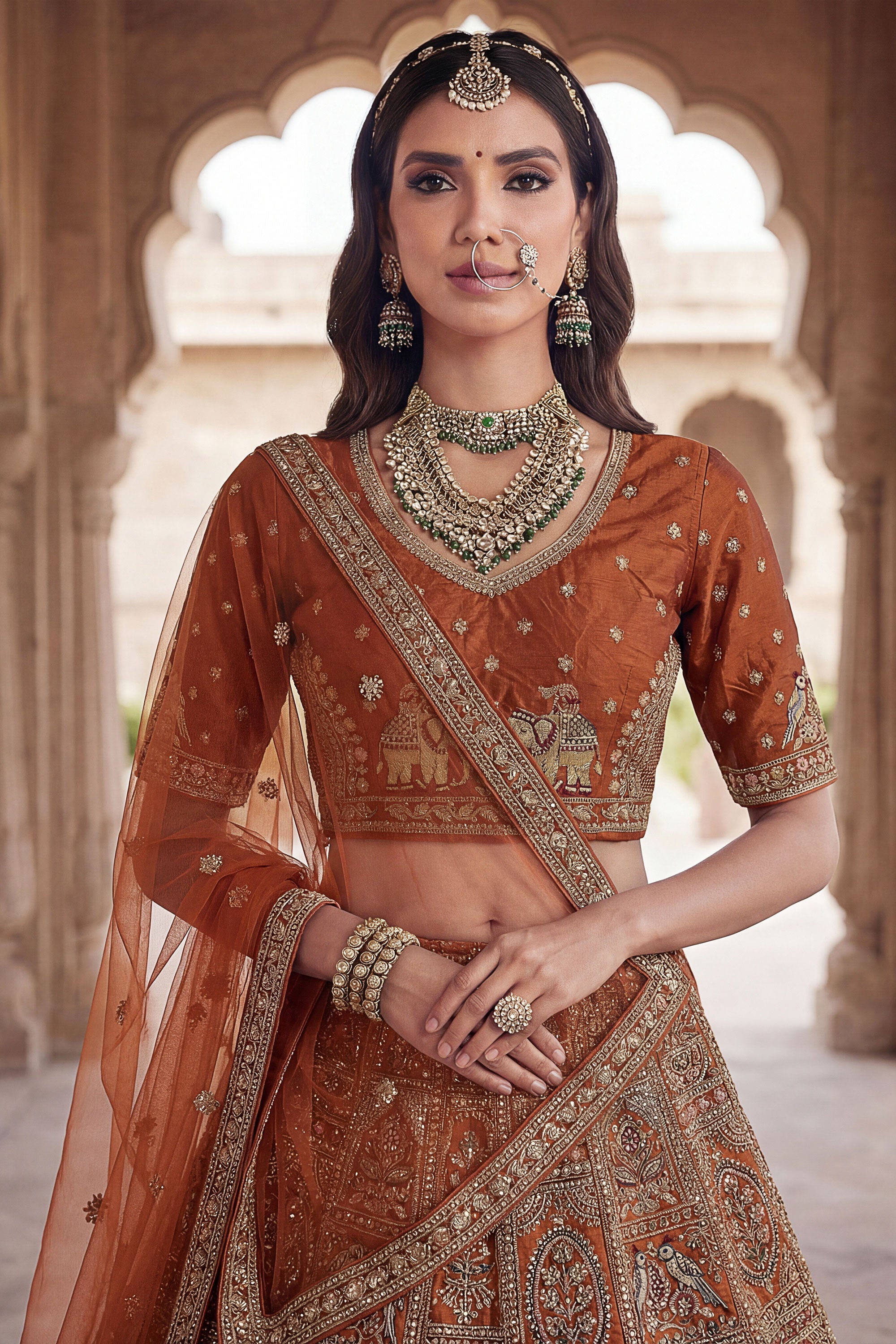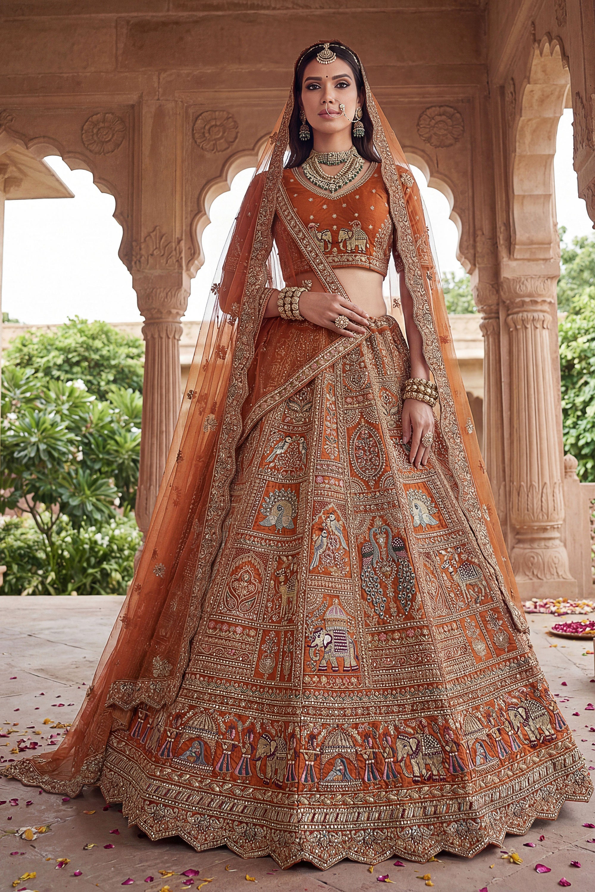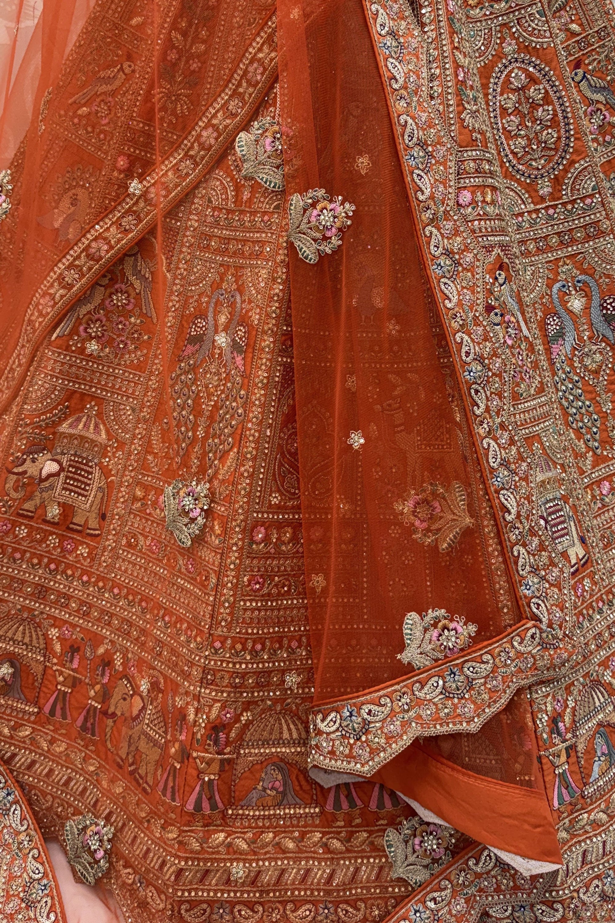 Orange Heavy Embroidered Designs Bridal Lehenga Choli