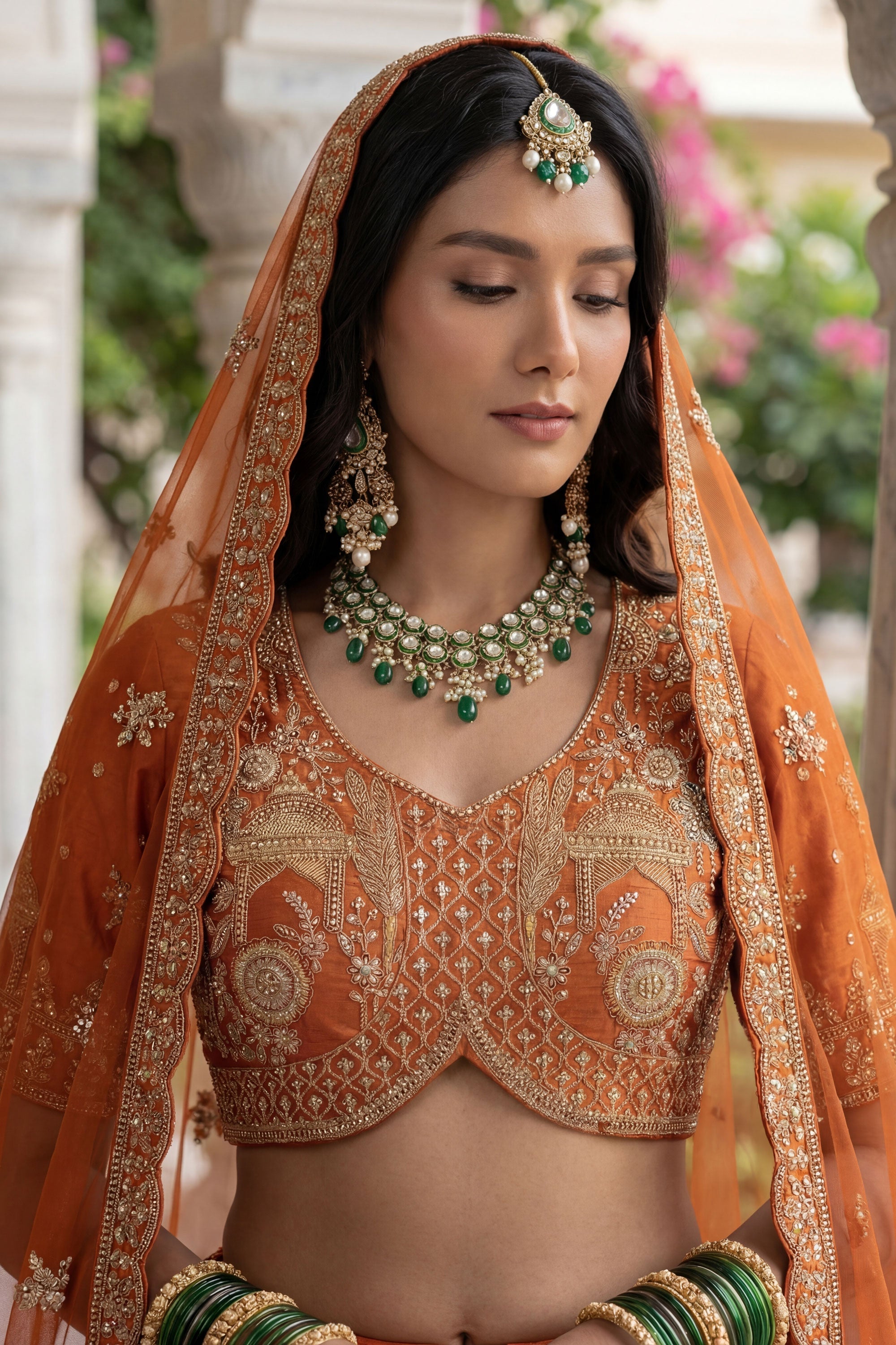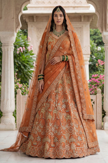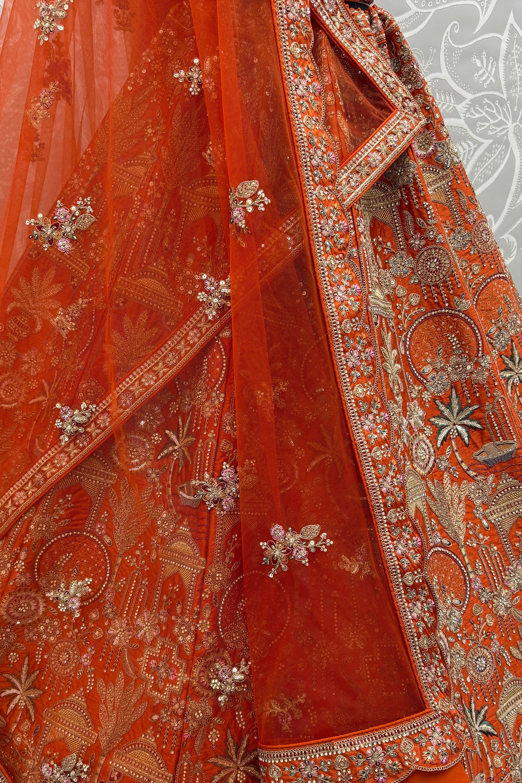 Orange Silk Heavy Embroidered Bridal Lehenga Choli
