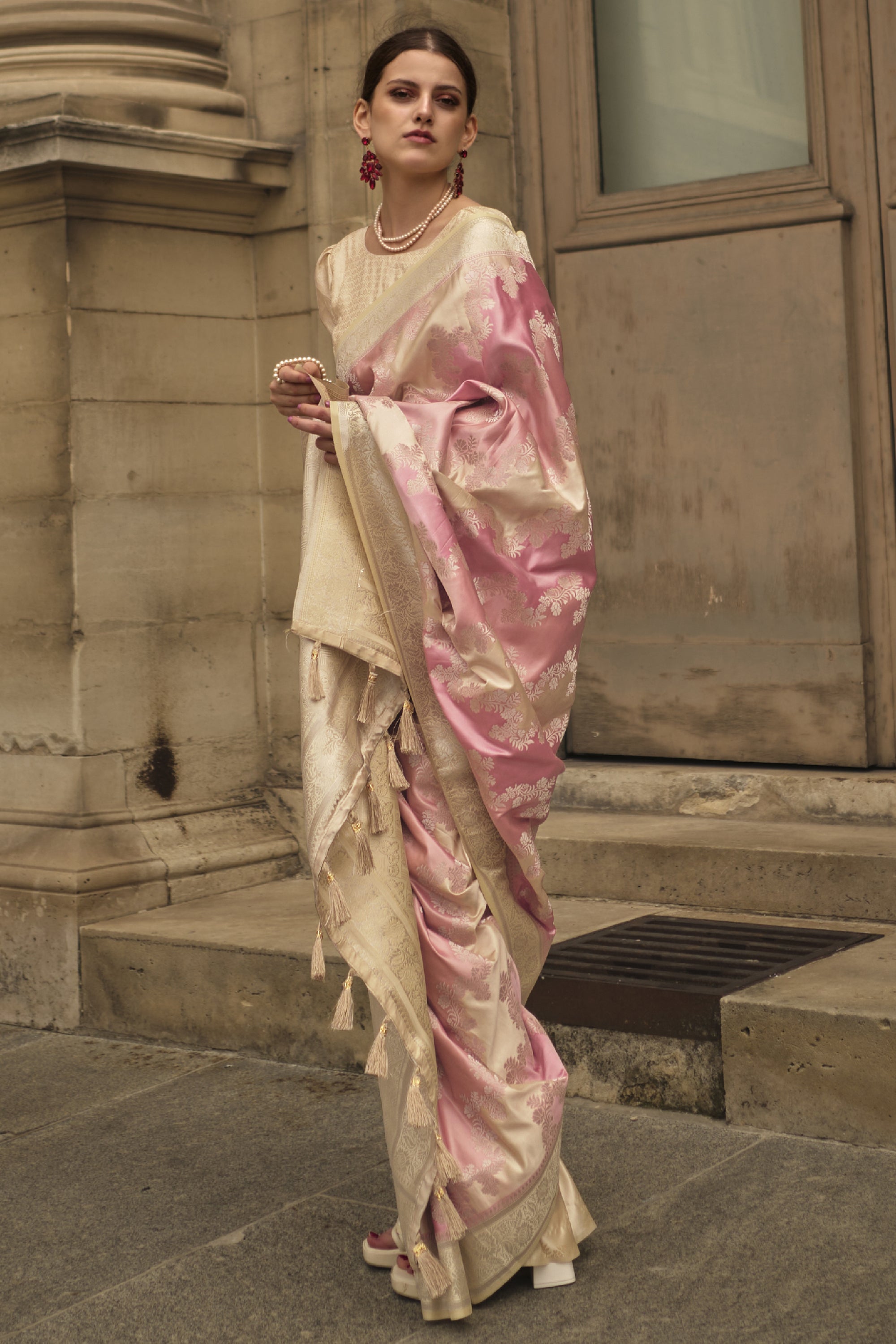 Pastel Pink Color Wedding Function Art Silk Weaving Work Saree