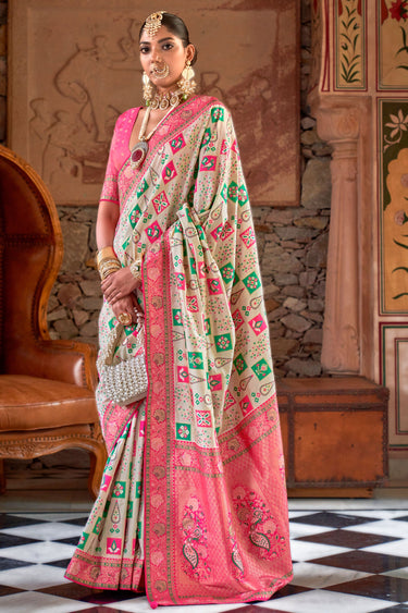 Patola Weaving Work White Color Art Silk Fabric Beauteous Saree