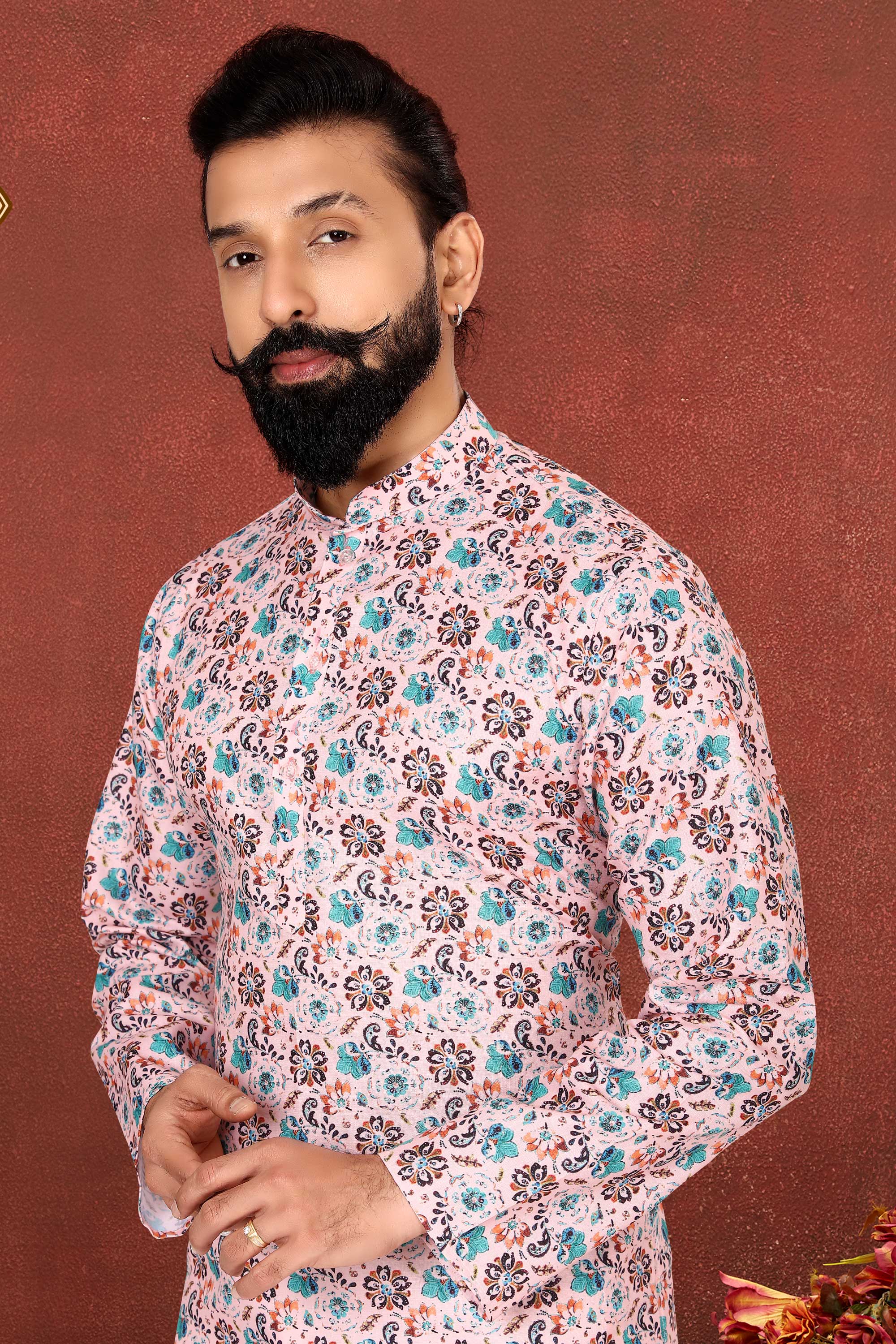 Peach Color Cotton Fabric Function Wear Readymade Kurta Pyjama For Men