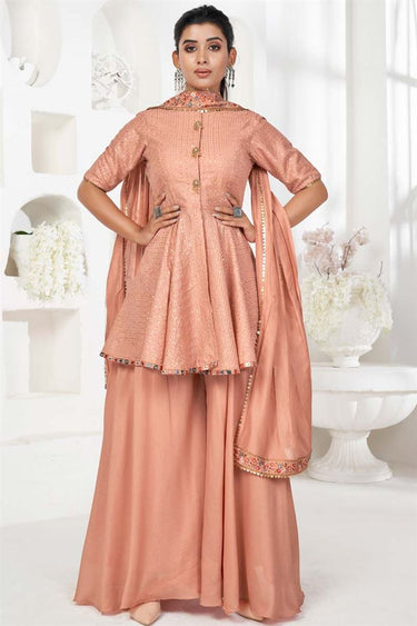Peach Color Party Wear Art Silk Fabric Salwar Suit With Stunning Sequins Work