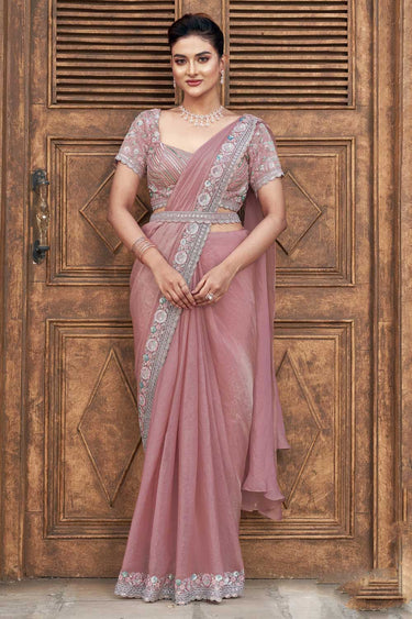 Peach Two Tone Satin Silk Hand Work Ready to wear saree
