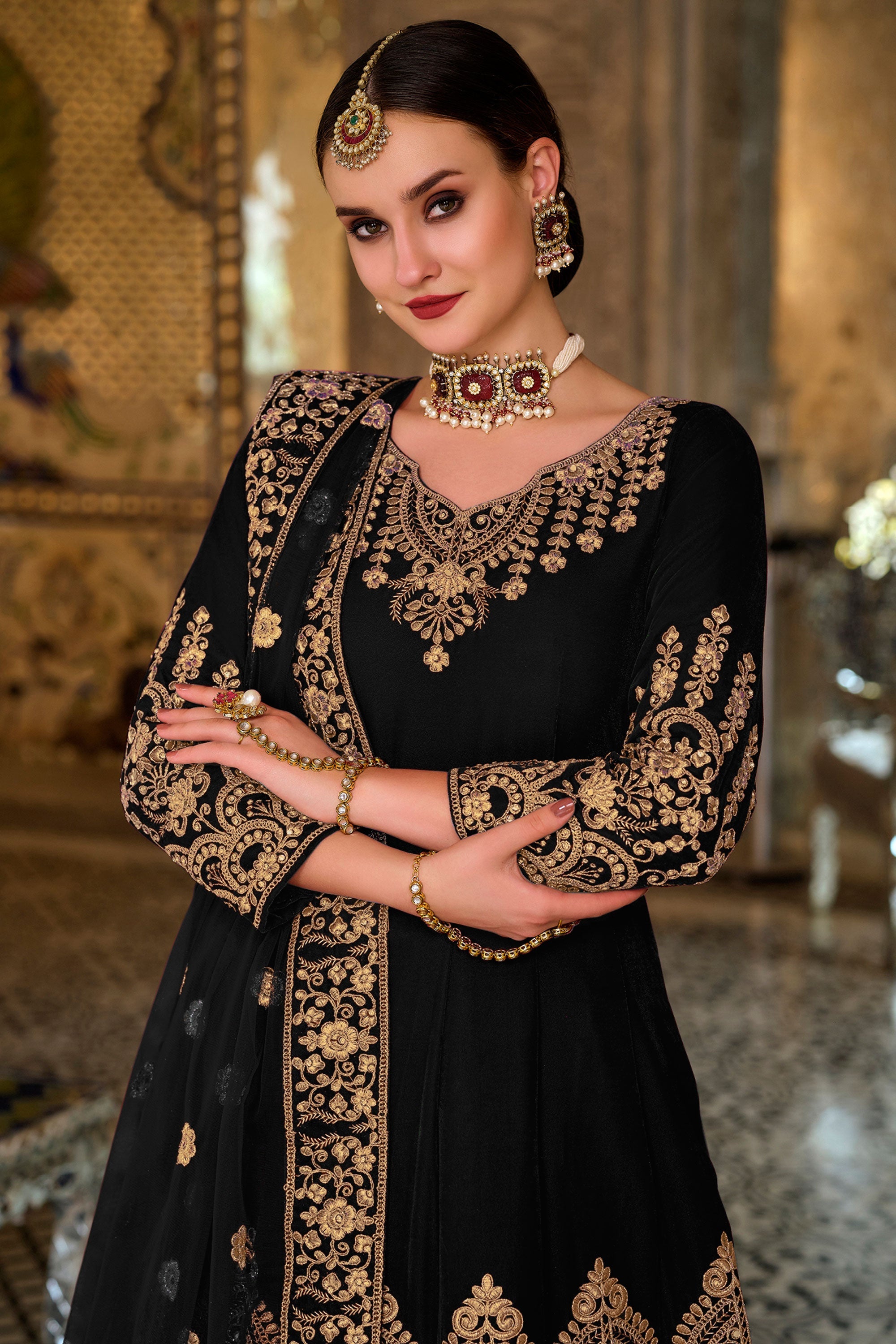 Phenomenal Wedding Wear Black Color Velvet Anarkali Suit