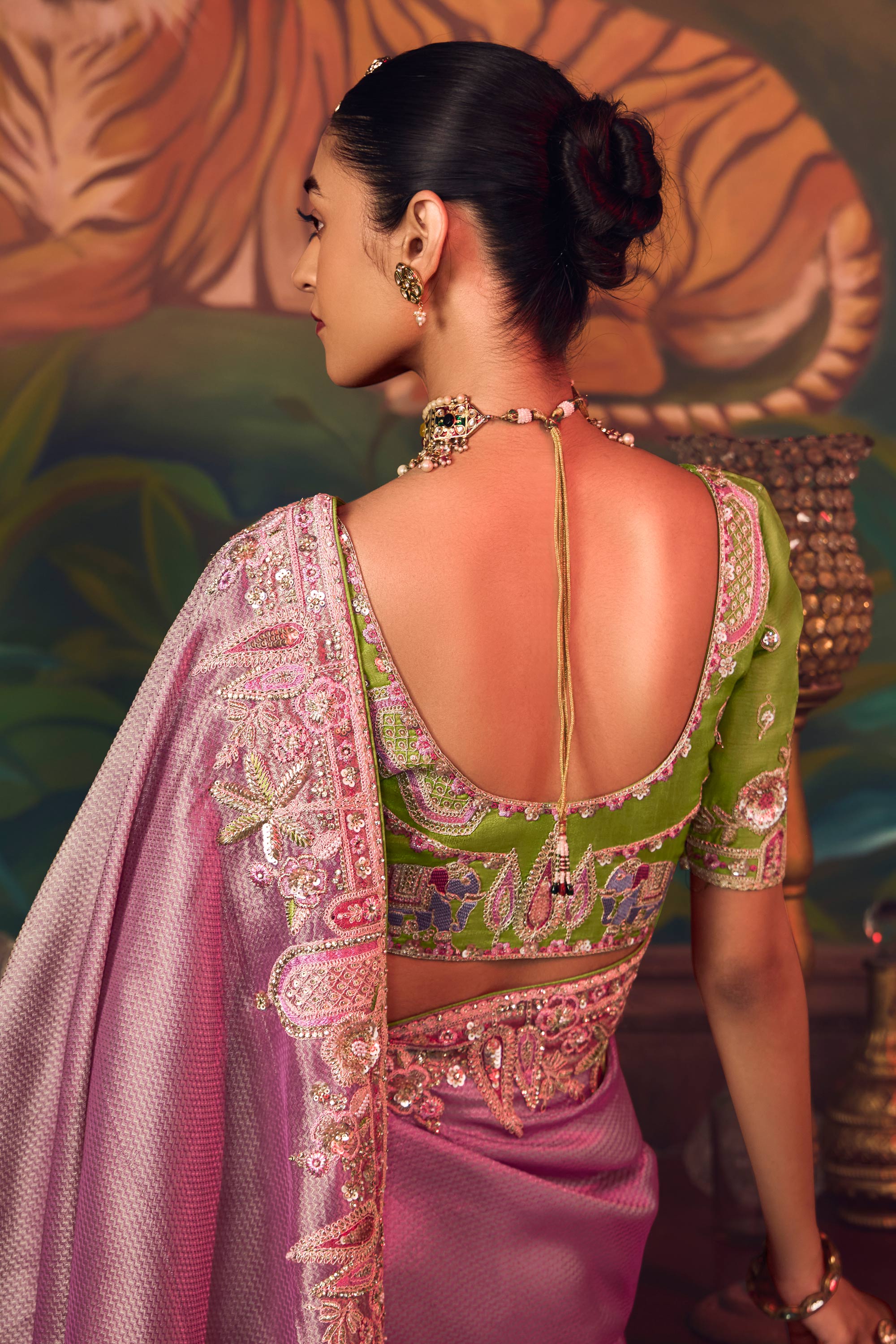 Enhance your ethnic collection with this graceful Heavy Border Work Wedding Bridal Silk Saree. Featuring luxurious silk fabric adorned with intricate border craftsmanship, this saree offers timeless beauty for weddings and celebrations. Accompanied by an unstitched blouse showcasing heavy detailing, you can create a tailored fit for added elegance. Designed for women who love a blend of tradition and luxury, this saree is perfect for making a bold yet refined statement. Treat yourself to unparalleled sophistication.