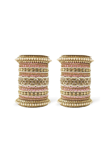 Pink Color Alloy Moti And Stone Work Bangle Set With Pacheli Kada