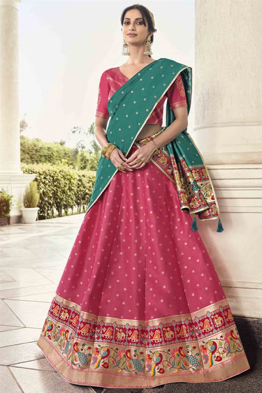 Pink Color Art Silk Fabric Function Wear Banarasi Style Lehenga Choli
