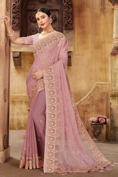 Pink Color Chiffon Fabric Festival Wear Miraculous Saree With Embroidered Work
