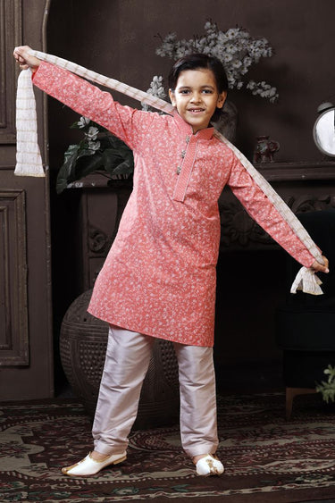 Pink Color Cotton Fabric Printed Sangeet Wear Readymade Boys Kurta Pyjama