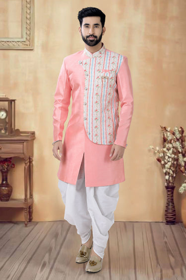 Pink Color Wedding Wear Readymade Lovely Silk Fabric Indo Western For Men