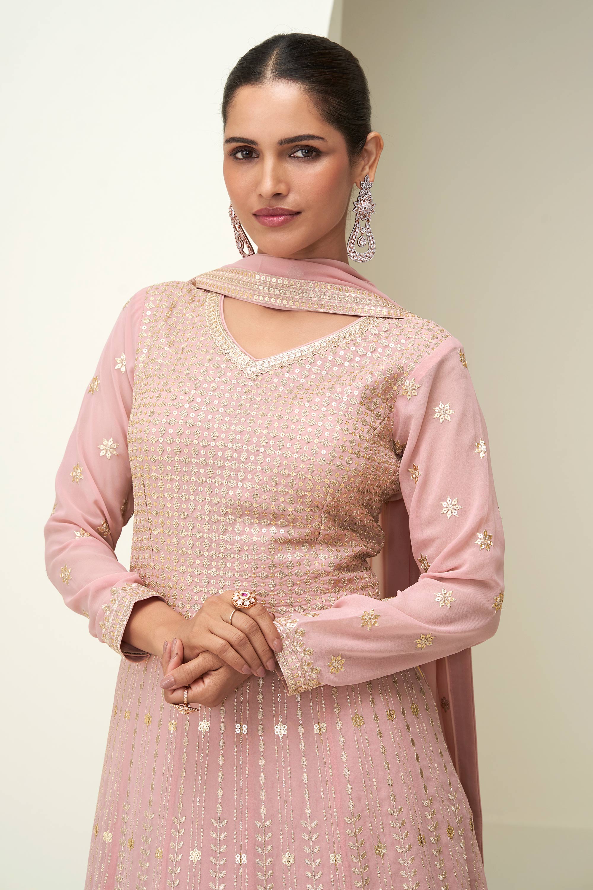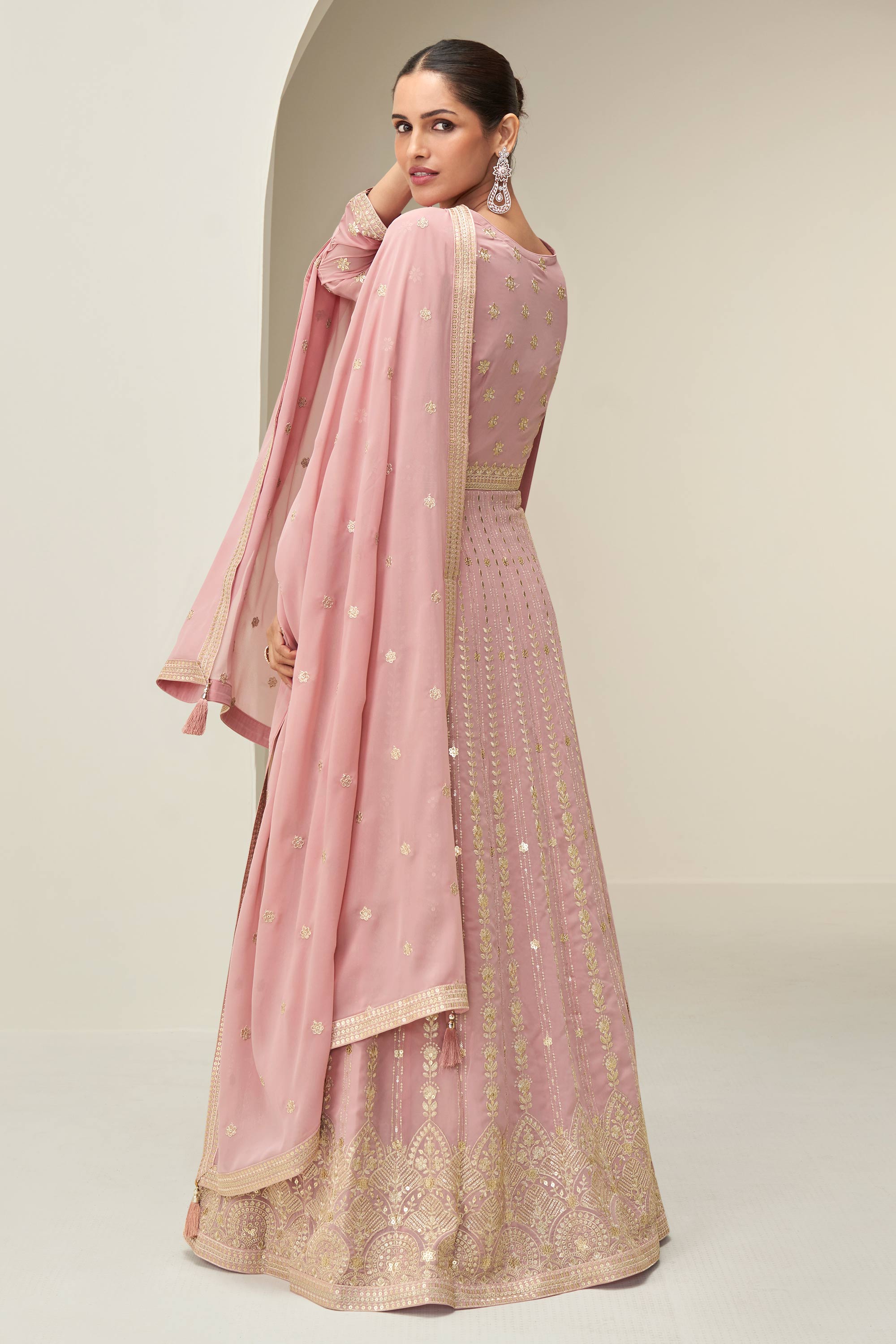 Pink Function Wear Georgette Readymade Anarkali Style Gown With Dupatta