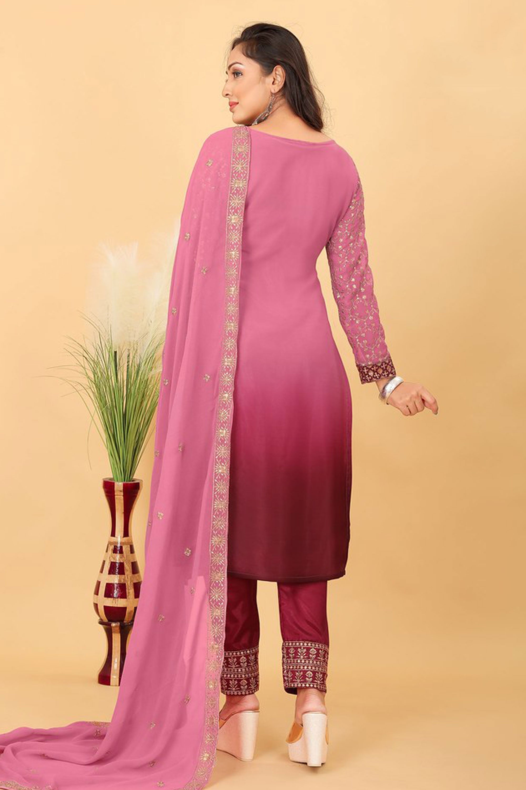 Pink Georgette Embroidered Readymade Straight Cut Salwar Kameez