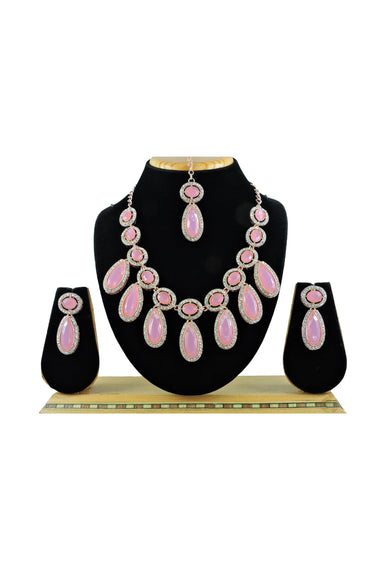Pink Stone Necklace Set With Earrings