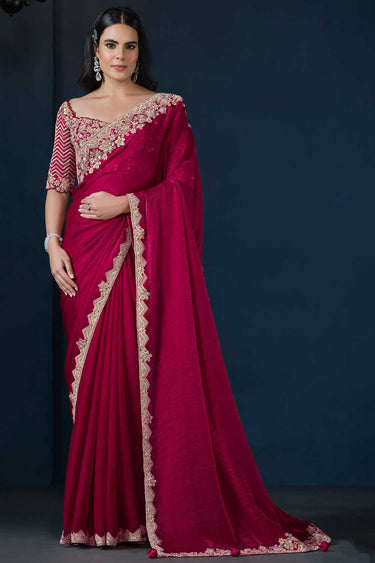 Pink Two Tone Satin Silk Sequins Pure Handwork Saree With Unstitched Blouse