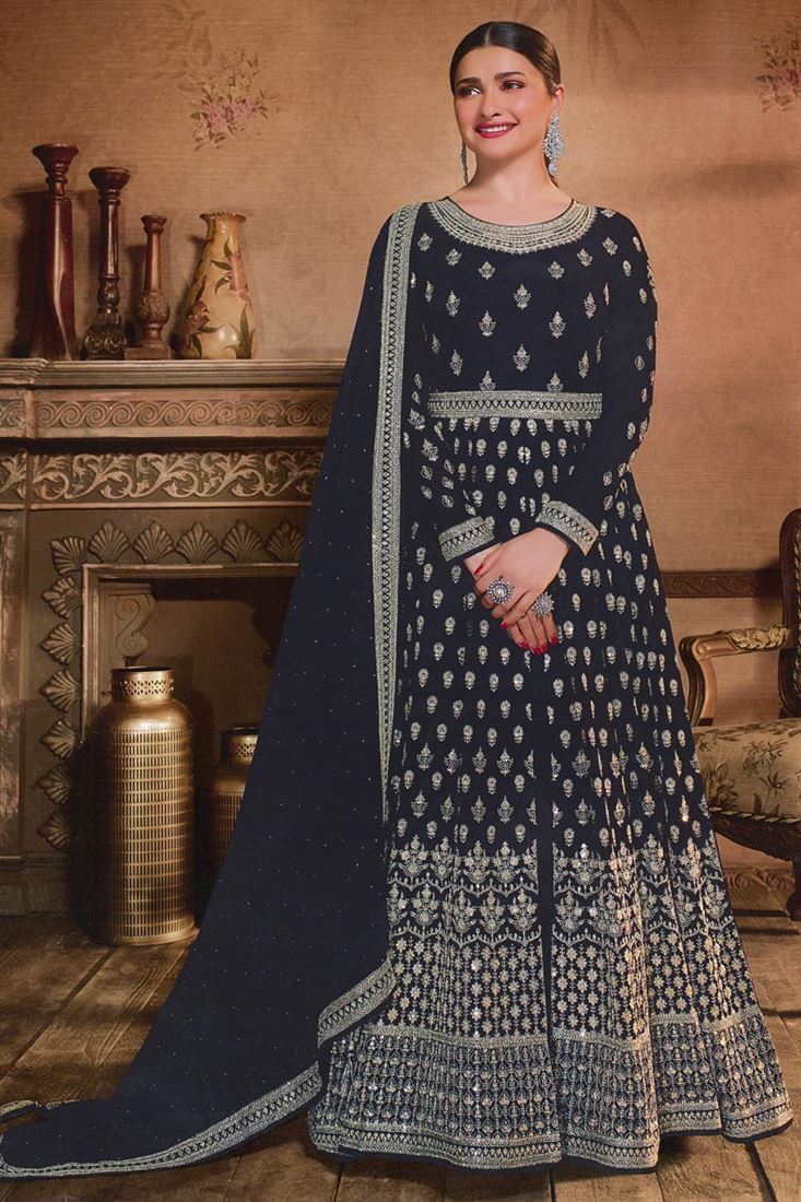Prachi Desai Marvelous Georgette Fabric Anarkali Suit In Black Color