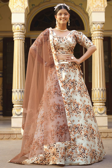 Printed Beige Color Sangeet Wear Lehenga Choli In Art Silk Fabric