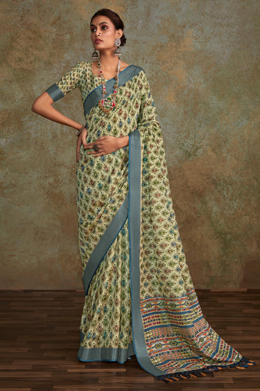Printed Work On Handloom Silk Fabric Bewitching Saree In Multi Color