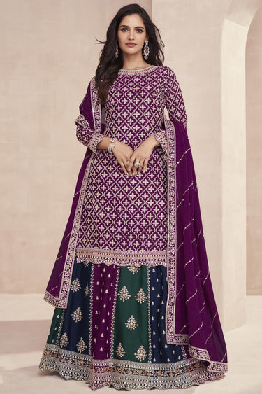 Purple Chinon Silk Fabric Embroidered Readymade Sharara Top Lehenga