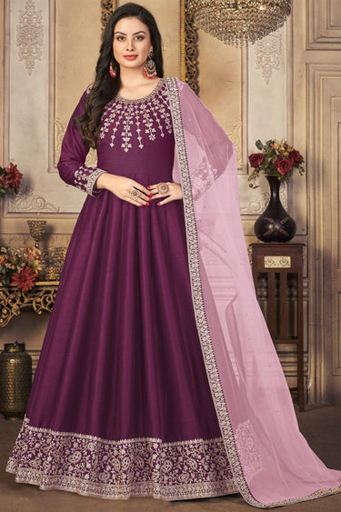 Purple Color Art Silk Fabric Function Wear Fascinating Anarkali Suit