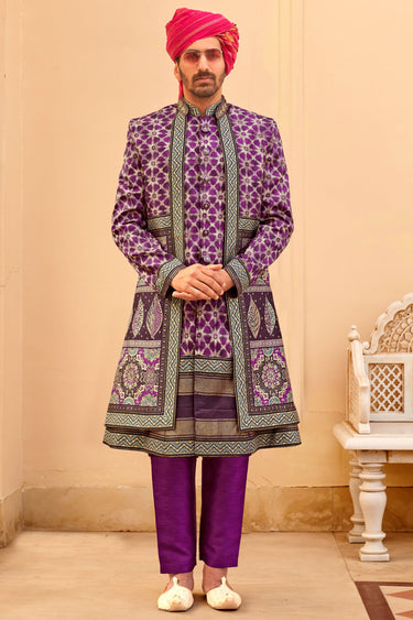 Purple Color Art Silk Fabric Readymade Wedding special Indo Western For Men