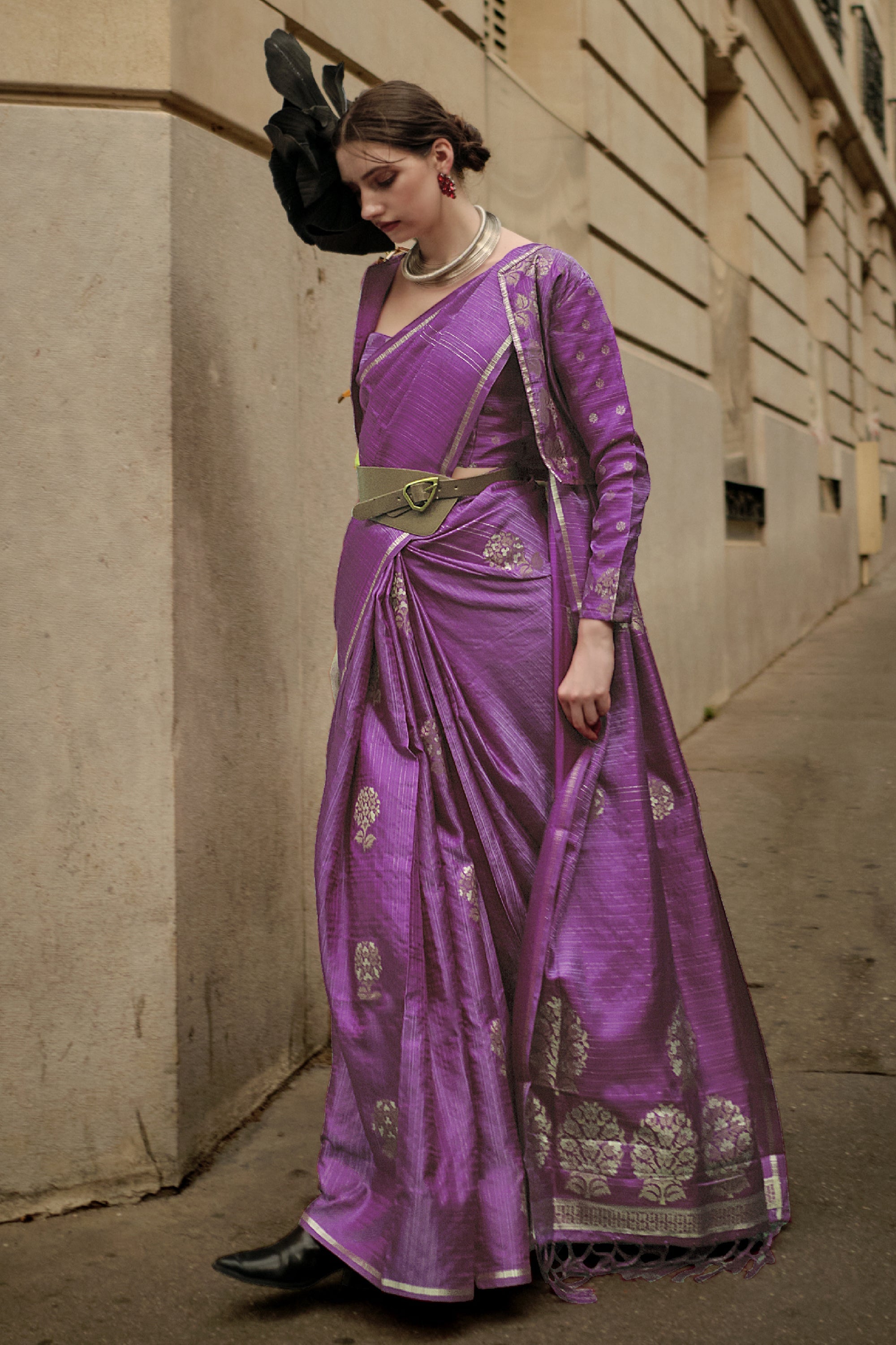 Purple Color Art Silk Fabric Weaving Work Function Wear Fancy Saree