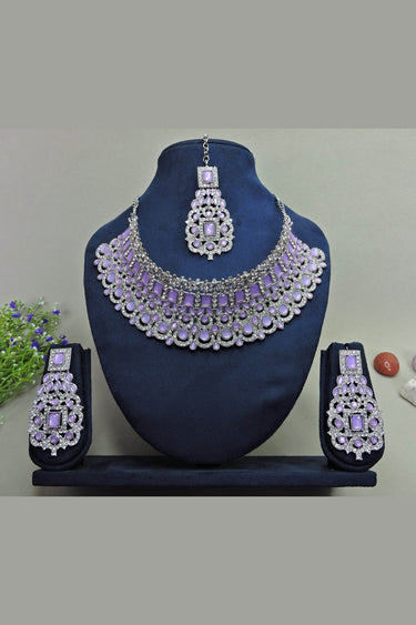 Purple Color Coveted Alloy Necklace With Earrings and Mang Tikka