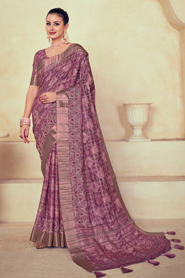 Purple Color Dola Silk Stylish Saree With Printed Blouse
