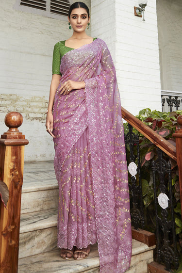 Purple Color Embroidered And Stone Work Party Style Adroit Organza Saree