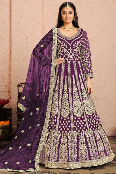 Purple Color Festive Wear Embroidered Net Fabric Designer Anarkali Suit