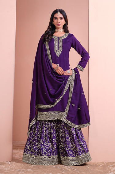 Purple Embroidered Palazzo Salwar Suit In Art Silk Fabric